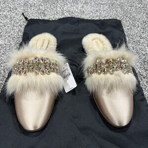 EXPRESS Satin Faux Fur Lined Embellished Rhinestone Sparkling Slippers - MEDIUM