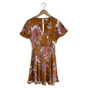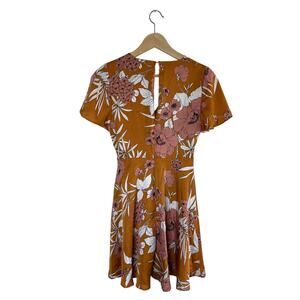 EXPRESS Satin Orange Floral Fit and Flare Mini Dress
