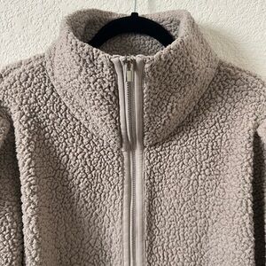 EXPRESS Sherpa Zip Up Jacket Women’s Size Medium Neutral Puffed Sleeves Teddy