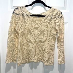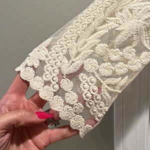Gorgeous detailing in the lace. Worn once. Size XS. Perfect paired with cowboy boots for a concert, rodeo, festival. Quality of this one is so beautiful in person. Color is a cream off white color.