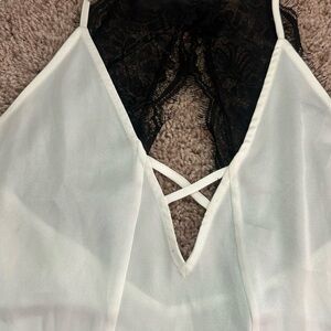 EXPRESS Sleeveless White Criss Cross black Lace-Back blouse