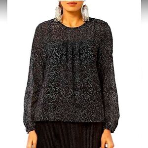 EXPRESS Speckled puffed long sleeves pleasant blouse black white polka dots L