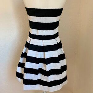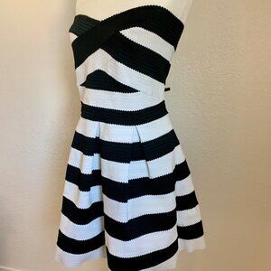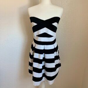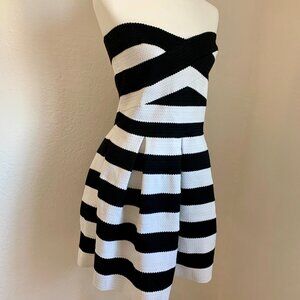 EXPRESS Strapless Bondage Structured Bodice Black and White Striped Dress Size L