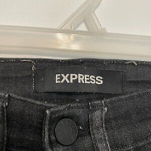 EXPRESS Stretch+ Denim Perfect High Rise Legging Black High Waisted Raw Hem 0
