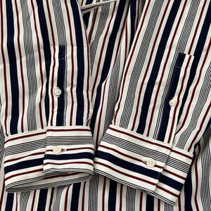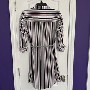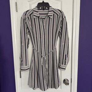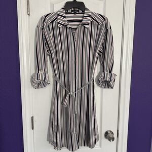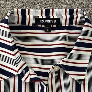 EXPRESS Striped Red White Blue Button Shirt Dress Tie Waist Roll Tab Size Medium