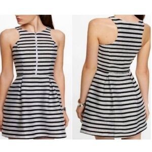 EXPRESS black and white Striped Sleeveless Fit & Flare Zip Up Textured Dress Size 0 Racer back Pockets