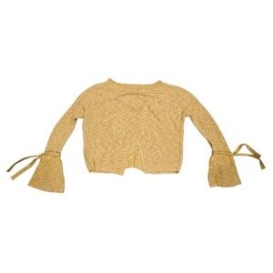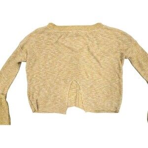 EXPRESS Sweater Womens Large XS Long Bell Sleeve Crop V Neck Pullover Yellow
