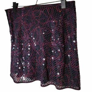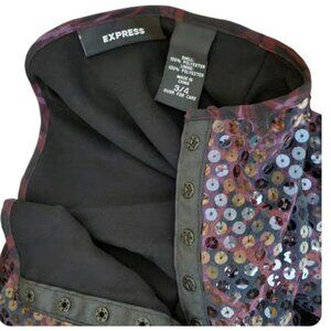 EXPRESS Sz 3/4 Purple Red Black Swirl Marble Animal Print Sequin Snap Side Close