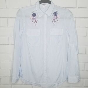 Shirttail hem; Floral embroidered