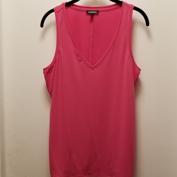 TANK TOP SLEEVE WITH THE SILKINESS OF A BLOUSE. HOT PINK COLOR. VERY CUTE. GREAT FOR WORK OR PLAY!! LOOKS BRAND NEW. I DONT THINK IT HAS EVER BEEN WORN. NO TAGS.