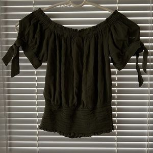 NEVER WORN! Army green blouse/shirt from Express! Can wear off the shoulders if desired. Stretchy material at the waist