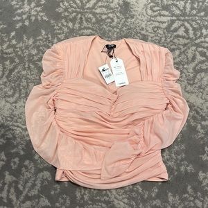 3/4 length ruched sheer sleeves