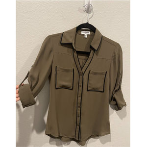 EXPRESS The Portofino Shirt Slim Fit Khaki Black Blouse. Size XS