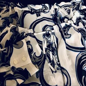 EXPRESS Tie Neck Sheer Blouse Bodysuit Deep V Neck