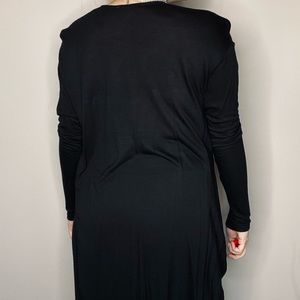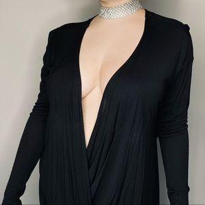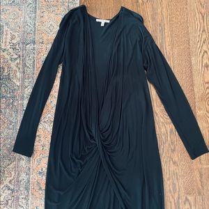 Express One Eleven extreme high-low hem long sleeve draped open front black top. Such a statement piece! Pictures don’t do it justice. Pair with leather leggings and some heeled booties. You can wear a bralette underneath or be a bit more daring and go bare! Excellent condition!
