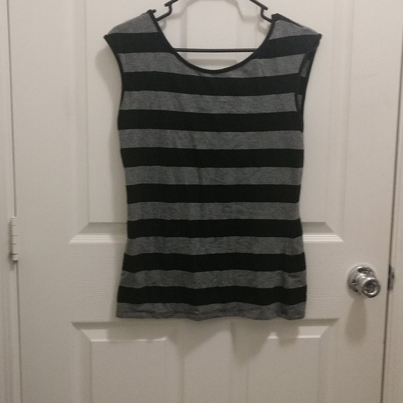 Black and gray striped express top. Worn once to try it on, has been in closet ever since.
