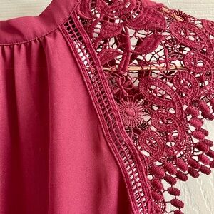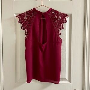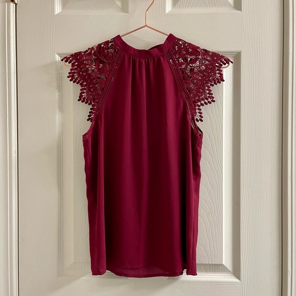 Nearly New - EXPRESS Burgundy Blouse with Lace Cap Sleeves. Size XS. This top is in excellent condition as I only wore it once or twice.