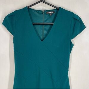 EXPRESS Tulip Sleeve Sheath Dress in Deep Teal Size XS Petit .