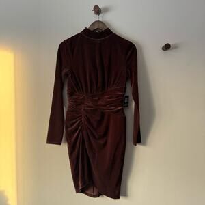EXPRESS VELVET BODY CONTOUR MOCK NECK RUCHED MINI DRESS SIZE SMALL