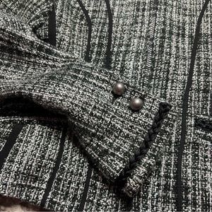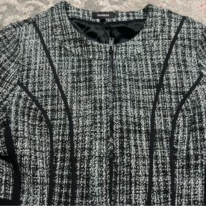 EXPRESS VTG Tweed Metallic Plaid Black Silver Jacket Coat Women's Size Small
