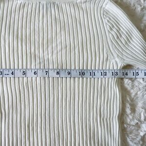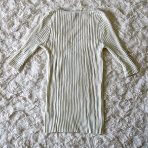 EXPRESS - V-neck zip up top ribbed half sleeve - off white - Size Small