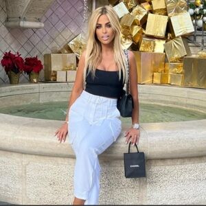 Elegant white ankle pants featuring stylish tan accents. Perfect for any occasion.