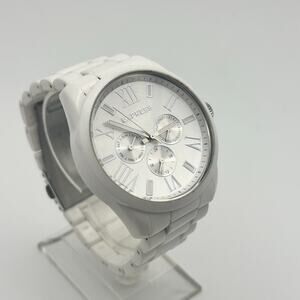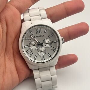 This beautiful EXPRESS women's watch is in excellent working condition and features a brand new battery. Chrono design dial. The sleek white stainless steel design and 44mm size make it a stylish and versatile accessory for any outfit. Don't miss out on this great deal!