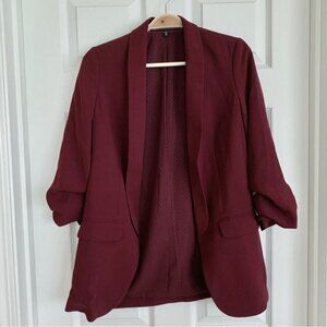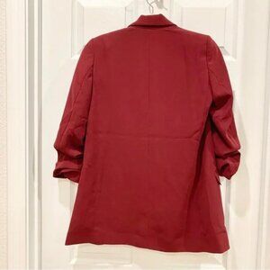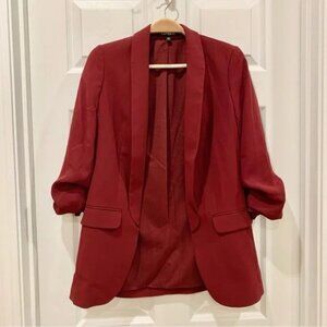 ❤️ EXPRESS Wine Red Ruched Sleeves Open Front Blazer Jacket