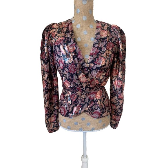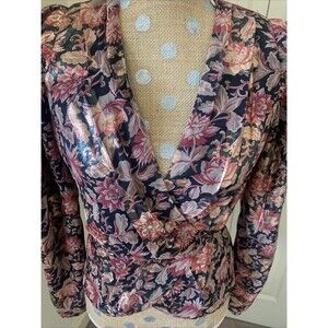 EXPRESS Women Metallic Whimsigoth Top Blouse Faux Wrap Dark Fairy Floral Small