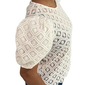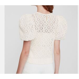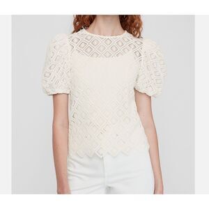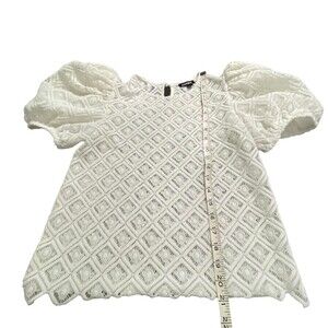 EXPRESS Women lace Puff Sleeve White Top Shirt Blouse Victorian Small