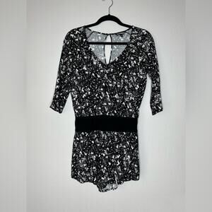 EXPRESS Womens 3/4 Sleeve Printed Lightweight Flowy V-Neck Short Romper Size XS