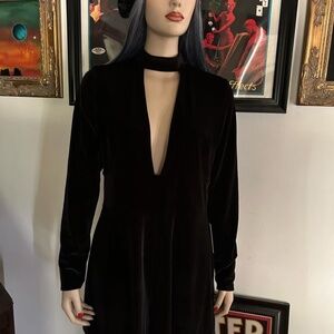 EXPRESS Women's Velvet Velour Choker Plunge Long Sleeve Black Romper