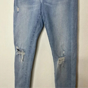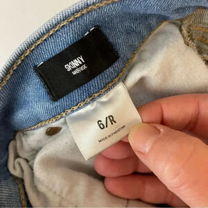 EXPRESS Womens Blue Distressed Skinny Jeans Size 6 Mid Rise Stone Wash Denim
