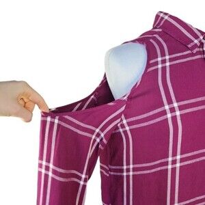 EXPRESS | Women's Burgundy Plaid Cold Shoulder Shirt - Size SP