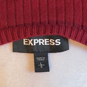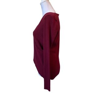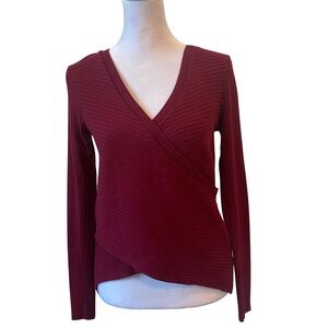 EXPRESS Women’s Dark Red Long Sleeves Ribbed Faux Wrap V-neck Sweater Size Large