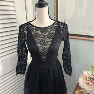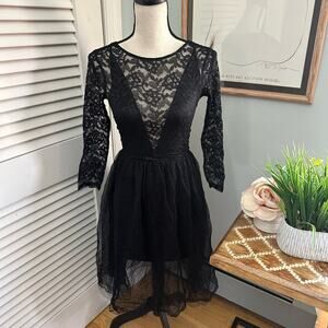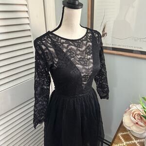 EXPRESS Womens Dress 0 Black Lace Fit & Flare Whimsigoth Grunge Witch Evening