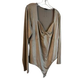 EXPRESS Women's Gold Bodysuit Sweatheart Neck BodyCon Size XL NWOT Metallic