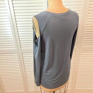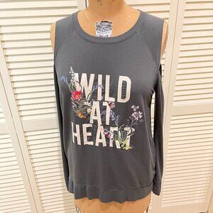 EXPRESS Women's Long Sleeve Cold Shoulder Top Size L Wild At Heart saying on a front Gray Color