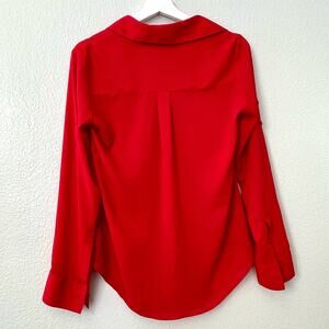 EXPRESS Womens Red The Portofino Shirt Button Down Blouse Top Size XS Workwear