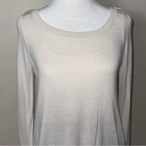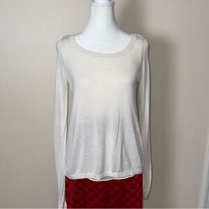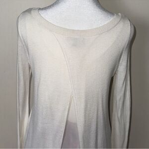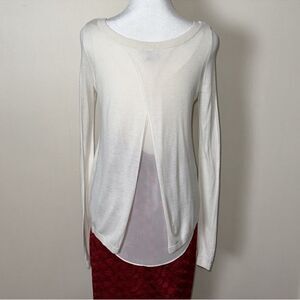 EXPRESS XS Ivory Crewneck Split Back Lightweight Knit Sweater Chiffon Lining