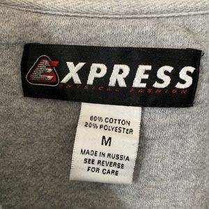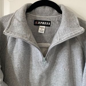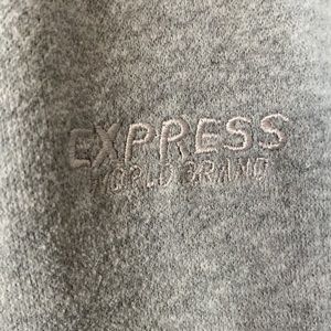 EXPRESS Y2K Cotton Blend Mock Neck Long Sleeves Gray Sweatshirt Size Medium. Zipper at mock neck in front. Long sleeves with small ribbing at cuffs. Small ribbing also along bottom straight hemline. Stitching details on front and back. Some pilling but that can be easily removed by the buyer. Color is gray. Perfect to lounge around during fall and winter.