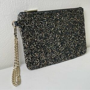 EXPRESS Y2K Gold Silver Black Glitter Sparkle Zip Wristlet Clutch