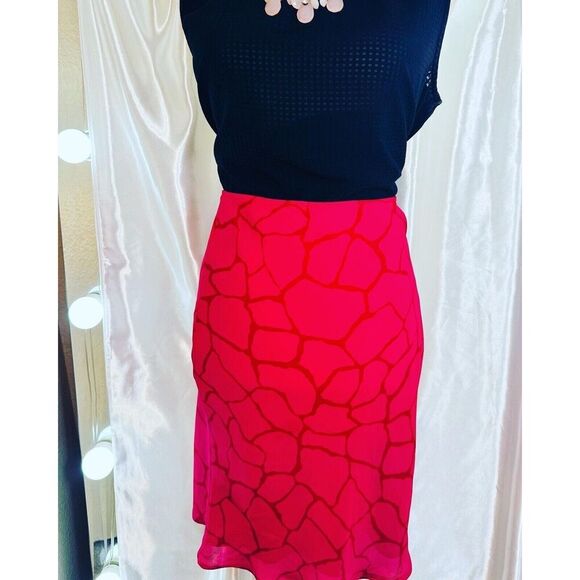 Y2K Express Ruffle Mermaid Midi Tube Skirt Bodycon Orange Pink Small VTG 2000s. Shipped with USPS Ground Advantage.