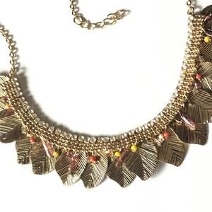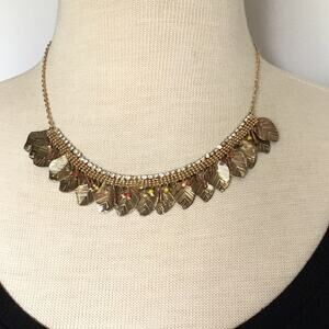 EXPRESS antiqued gold tone dangling leaves Roman collar necklace