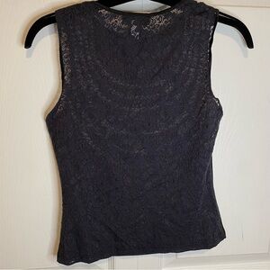 EXPRESS black Pearl necklace print top back laced stretchy sleeveless cropped XS