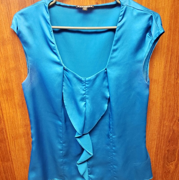 Express short sleeve blouse Ruffle front Right underarm looks slightly stained but it's worn. Not too noticeable when on.