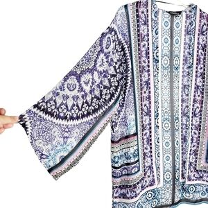 Express boho open front kimono. Slightly cropped sleeves. Would make a great coverup or layering piece