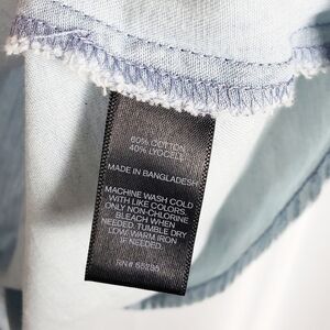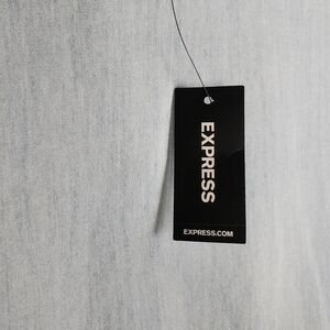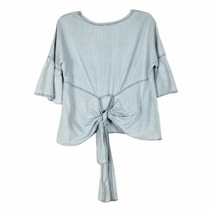 Express top with longer short sleeve bell sleeves. Pretty tie back detailing. Fun chambray.