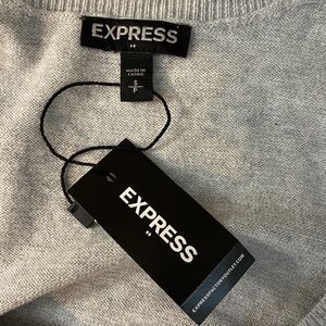 New with tags Express grey cold shoulder fine knit floral embroidered dolman sleeves twist front sweater top. Size small, cotton, see pictures for details.