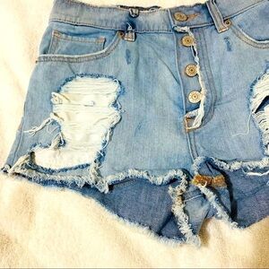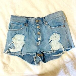 EXPRESS high rise button fly distressed Jean Shorts womens size 6